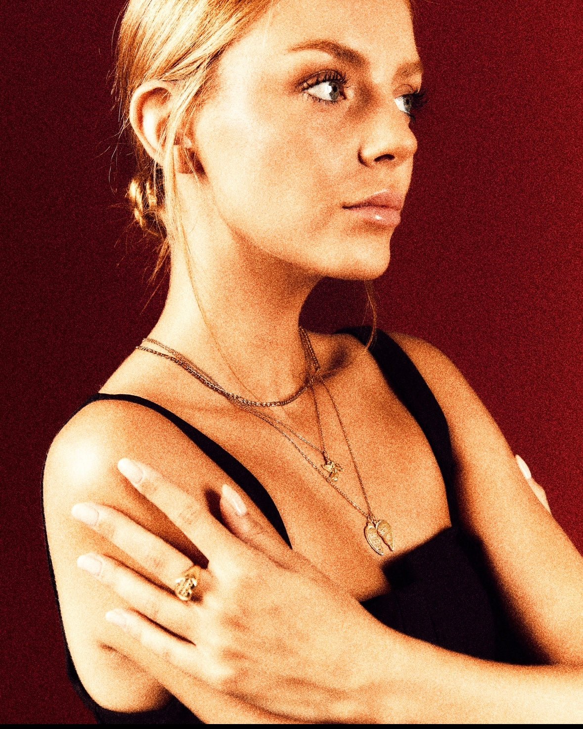 Gouden afwerking: 18-karaats milieuvriendelijke vergulding. Verstelbare ketting: 45 + 5 cm (verlengstuk inbegrepen). Hypoallergeen: Geschikt voor alle huidtypen.